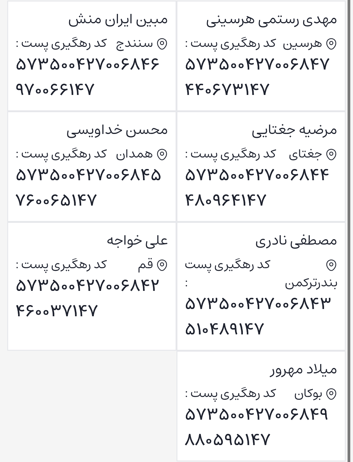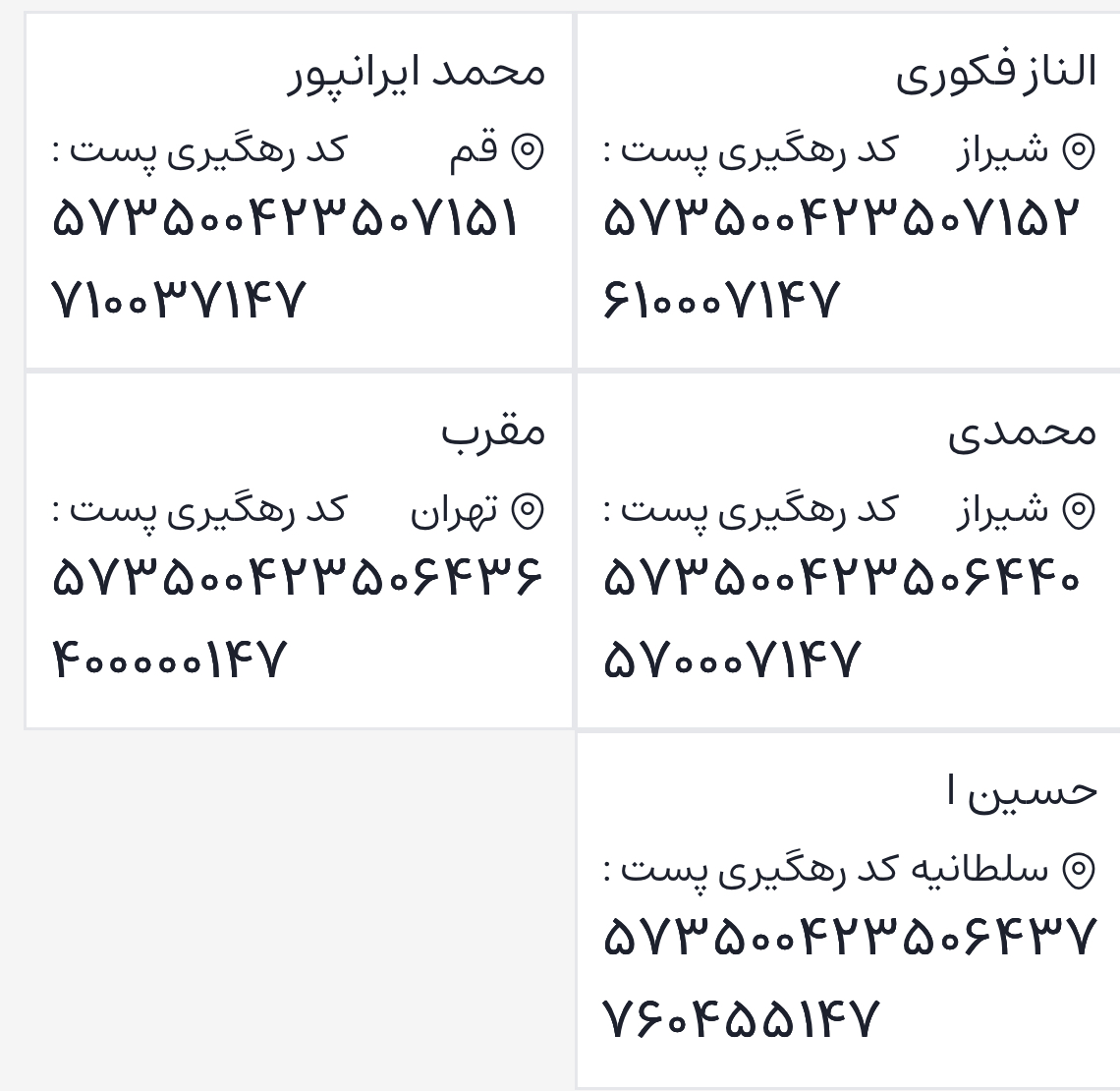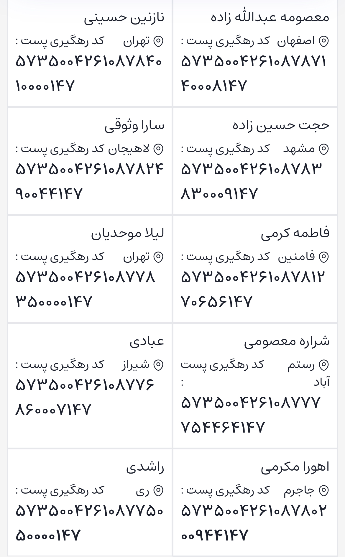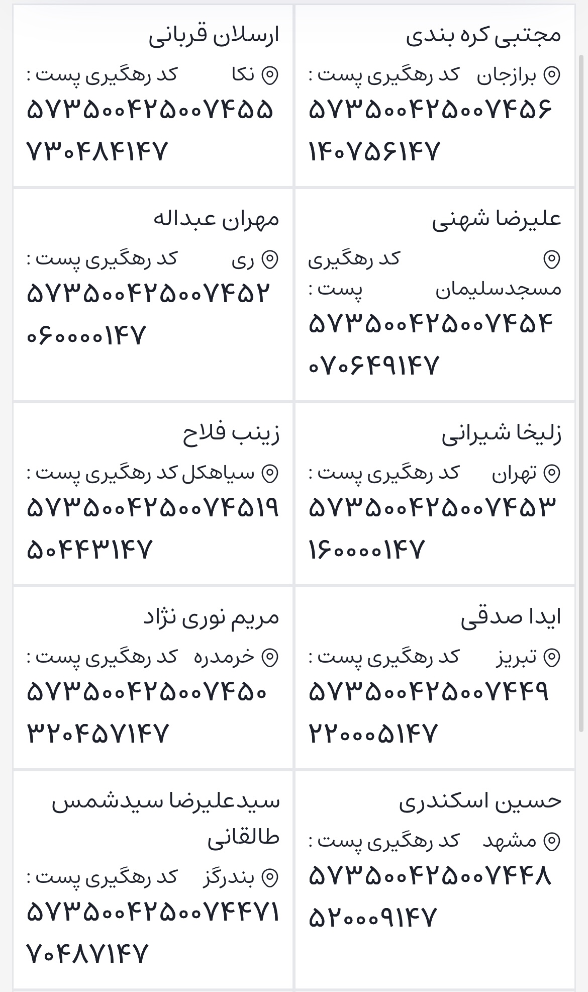با سلام و وقت بخیر، شما عزیزان میتونید با استفاده از کد رهگیری از طریق سامانه رهگیری مرسولات پستی و سامانه تیپاکس، سفارش خودتون رو پیگیری کنید و بدونید دقیقا کجاست.